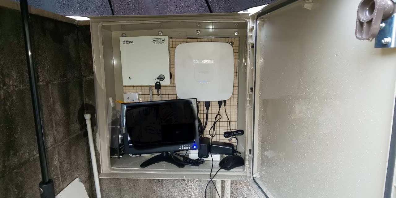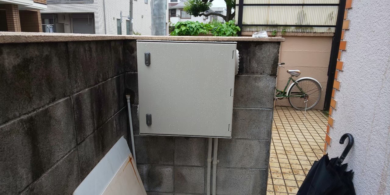 管理人室が無い為、壁にBOXをとりつけて録画機一式を納めました。