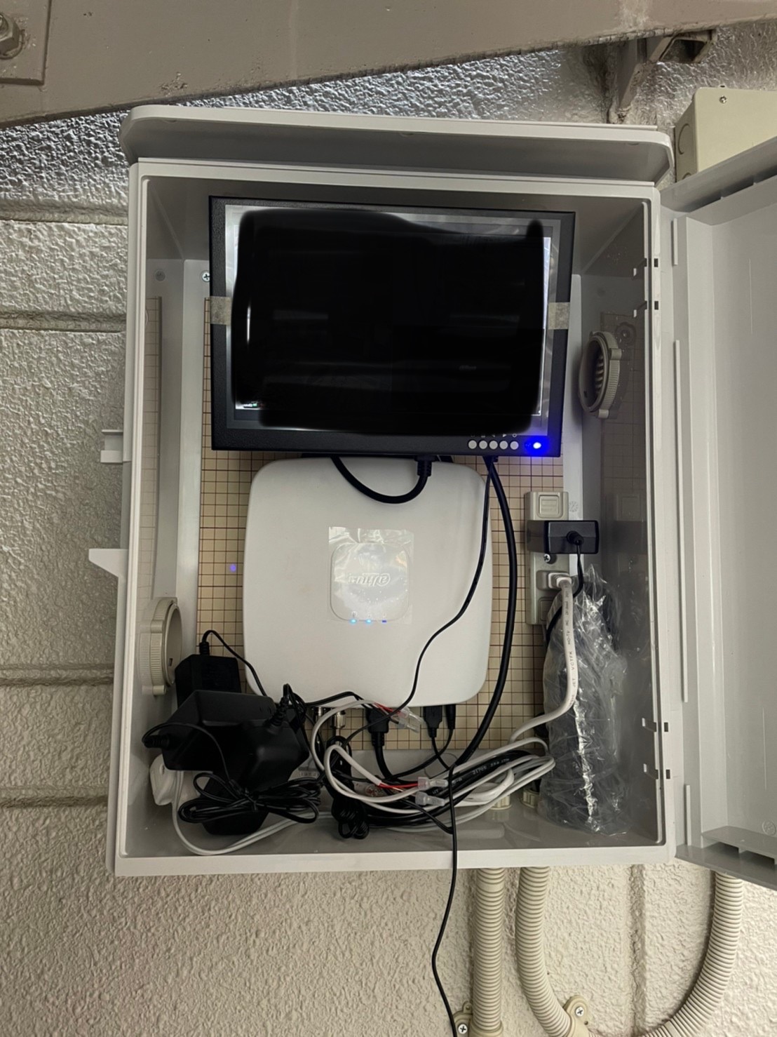 カメラは3台設置で屋外収納BOXに